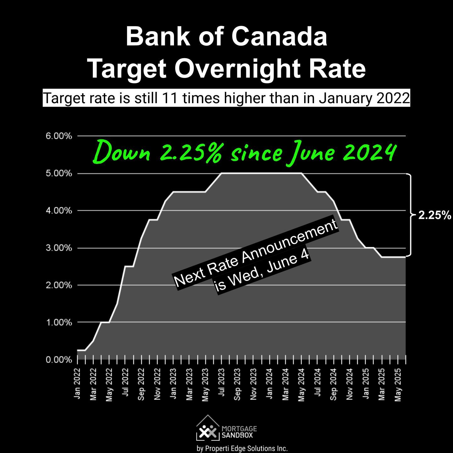 The policy interest rate also called the overnight rate, this is the rate at which the Bank of Canada lends money to major financial institutions lend money overnight. It sets the baseline for how expensive it is to borrow money in Canada.